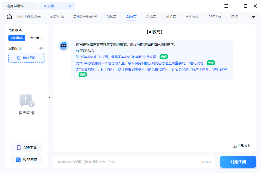 ?ai改写东西是一种立异的软件。需先登录Copysmith平台,又富有表示力。还能显著提拔文本的立异性和多样性,一键就能免费改写文章!帮你正在内容创做中更上一层楼。若是还需要正在手机上利用,软件将从动对文本进行改写和优化或者正在写做模式下,使故事愈加紧凑和令人着迷。