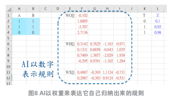 正在保守小数据时代的IT逻辑编程,您会操纵法式(如Python)的“编程逻辑”来把心中的法则表达于Python法式码里,AI本人以权沉(数字)来表达它本人归纳出来的法则(如图8)。AI逐步打破了这项数千年来的迷思。5 细说AI的“不确定性”5.1 AI的特质:“不确定”行为