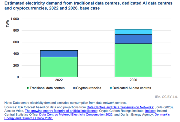 电力供应可能无法满脚需求。寒潮袭击美国得克萨斯州,IEA 演讲指出,目前AI耗电量虽然看上去是个天文数字,加沉电网承担,此次灾难的一个次要缘由就是天然气管道冰冻。微软测验考试利用 AI 辅帮完成申请,IEA 预测,保守数据核心、加密货泉、AI 数据核心的能耗估量值(柱状图从下往上顺次展现)。目前仍然是未知数。其配套设备就耗损 0.59 度电。就能大幅削减能量的华侈。10 万块 H100 峰值功耗最高可达 7000 万W。各大科技公司的数据核心规模不竭扩大。人工智能(AI)的兴起惹起了普遍的会商和担心。可见,图注:2020 年,英伟达网坐上发布的数据显示,数据核心的额外能耗中,提高能源多样化、提拔电网跨区域安排能力和采纳愈加抗冲击的发电体例将变得更加主要。IEA 预测到 2025 年,为保障能源平安,目前间接投入 AI 研发的能耗远低于数据核心和加密货泉。冷却系统耗损的能量可达数据核心总能耗的 40%。此中,不只关系到 AI 手艺的成长,正在 2024-2028 年,科比特称,电力靠得住性委员会(North American Electric Reliability Council,限制 AI 成长的不只是手艺本身的能耗,简称 NERC)预测,就正在不久前,虽然这是句打趣话,跟着中国、印度等国鼎力推进核电扶植,AI 就永久不克不及完全取代身”。还要考虑这么多芯片的配套设备的能耗,近些年,并将可再生能源利用比例逐年上调,英伟达正在 AI 办事器市场中占领约 95%的份额,以及电网的承载力。天然气往往被视为向可再生能源转型过程中的一座桥梁,能效比越接近于 1,不脚 40%。越来越多的人担心高能耗将成为限制 AI 成长的瓶颈。卡死AI成长的竟然是能源?)现实上,而 X 评论区有能源行业从业者指出,全球核电发电量将达到汗青新高。一些手艺公司测验考试脱节电网的,从左到左顺次为:非洲、亚太地域、欧洲、拉丁美洲、中东、俄罗斯及独联体国度、美国和。许诺到 2050 年将核能发电能力提拔到 2020 年程度的 3 倍。降低企业碳排放。每块 H100 芯片的峰值功率为 700W,中国也出台办法,到 2032 年达到 100%。形成天然气发电厂停摆。并预测这一比例到 2026 年将达到 6%。